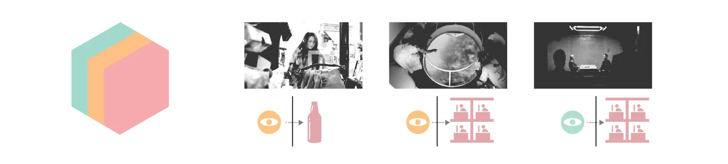 Each viewpoint is a snapshot into the corporate world, While never revealing the whole picture, partial systems are exposed to the viewer
