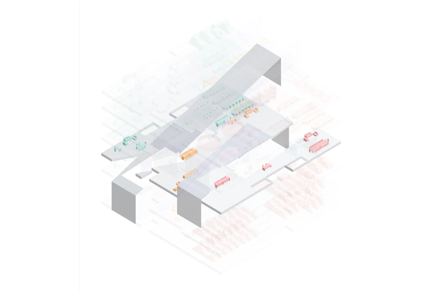 Mediated by staired surfaces, different constituencies are invited to interact in a presenter - presentee relationship. While the interaction itself is unprescribed, the formal infrastructure ensures a play of show and tell.